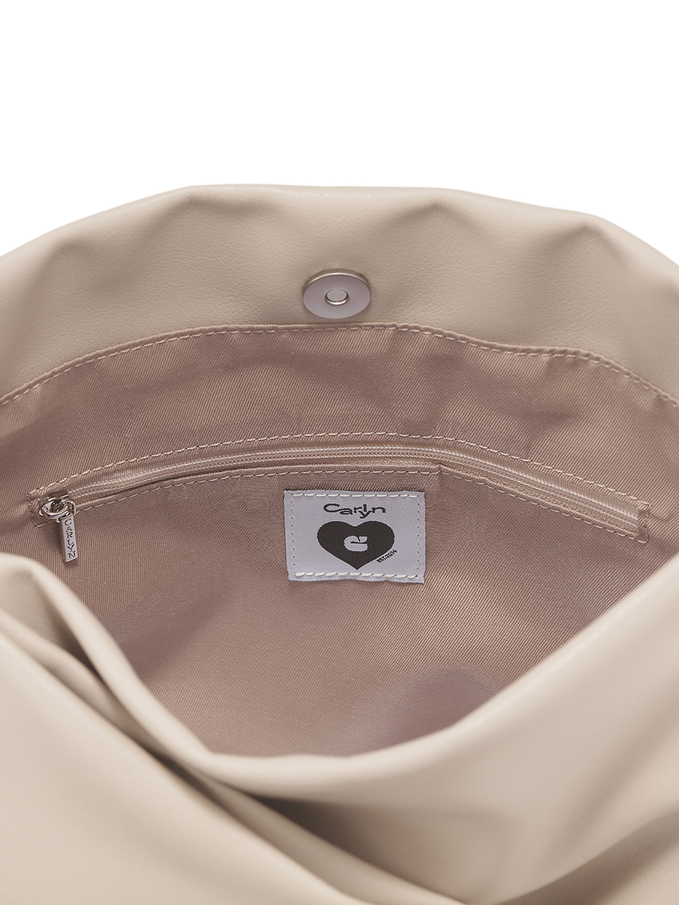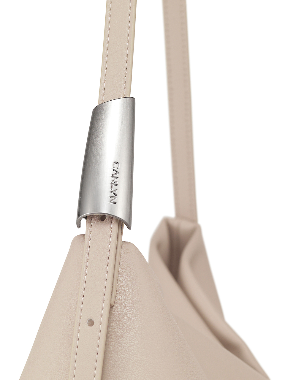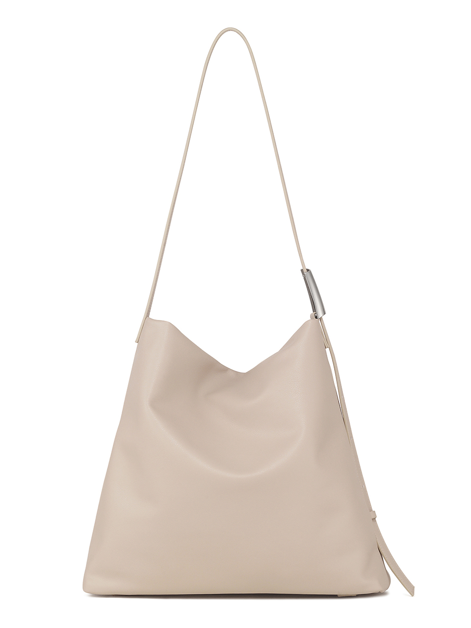 · A voluminous body with a chain strap creating a softly gathered silhouette