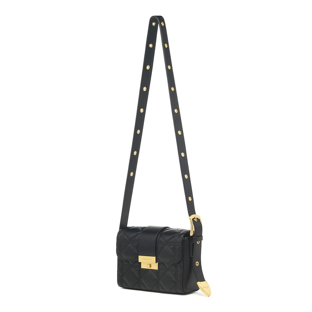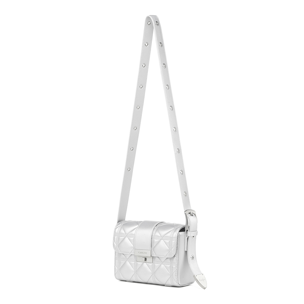 · Renewed version of the Minute with larger quilting and a softer touch · Belt strap accented with buckle and metal tip detail · New Carlin logo engraved on the belt tip · Interior: 1 zip pocket, 1 open pocket