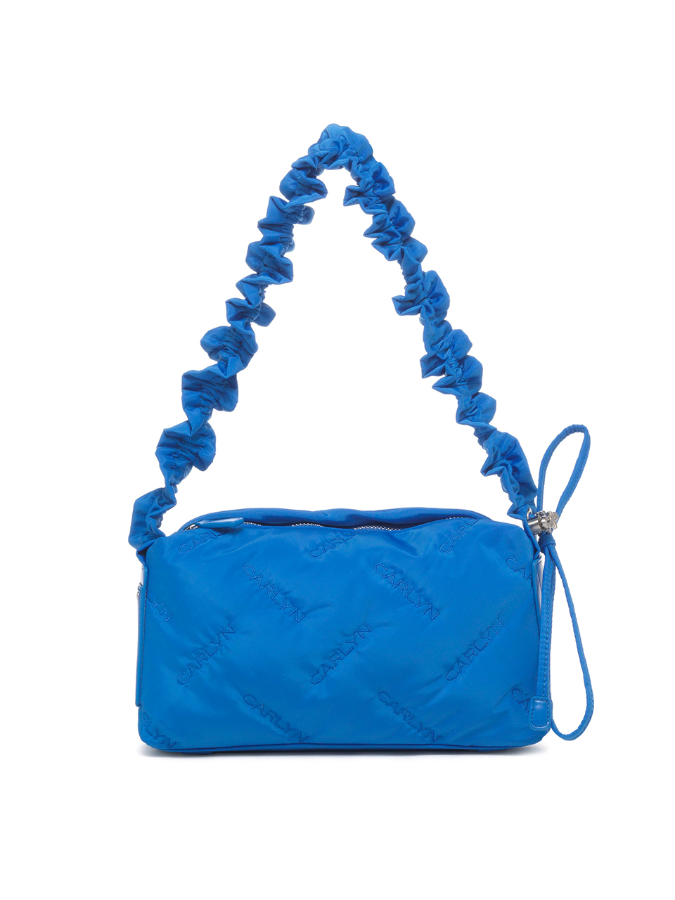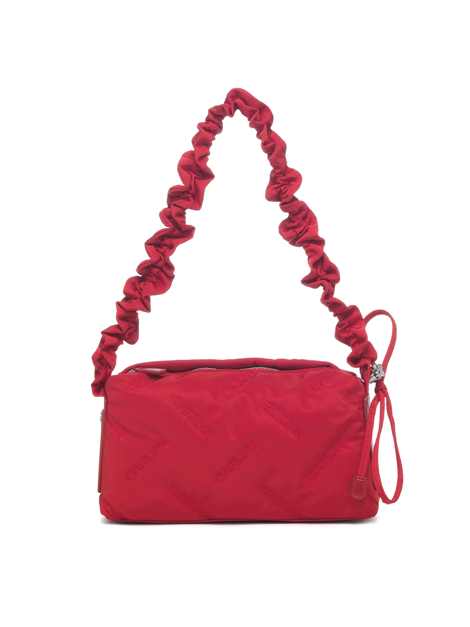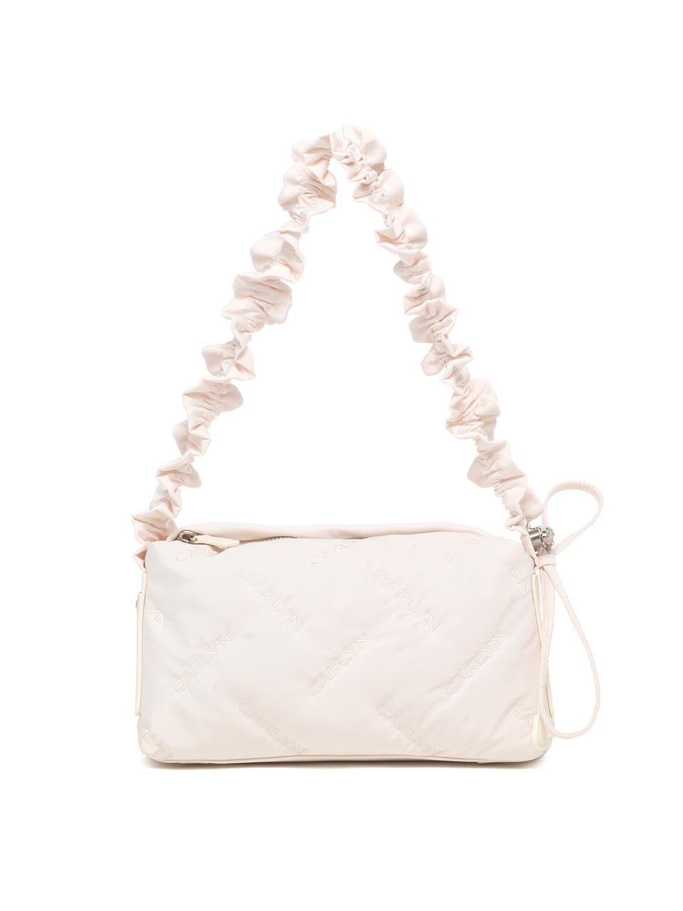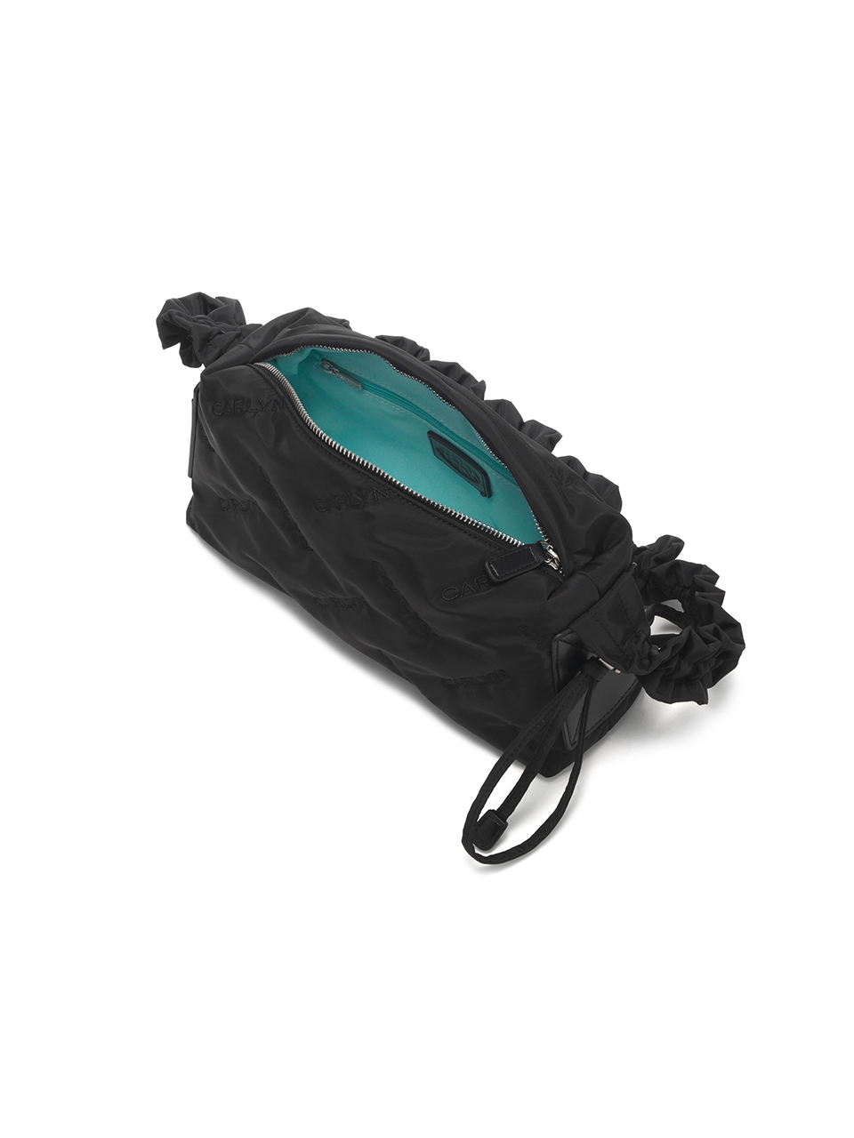· Square-shaped nylon mini bag with CARLYN logo quilting · Adjustable strap with logo stopper for versatile styling · Lightweight and spacious, with a side PU pocket for card storage