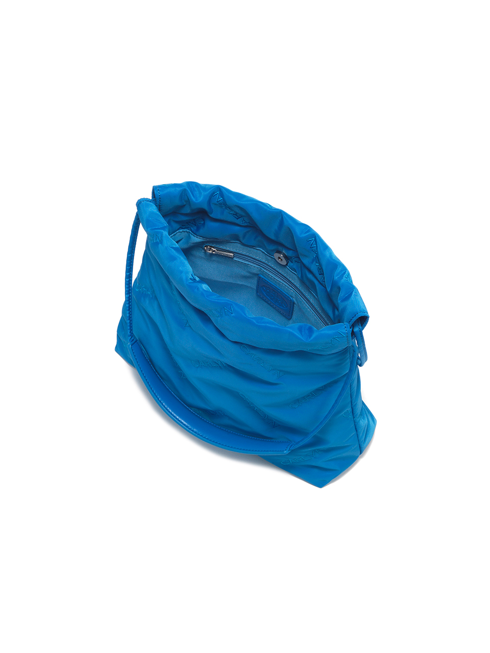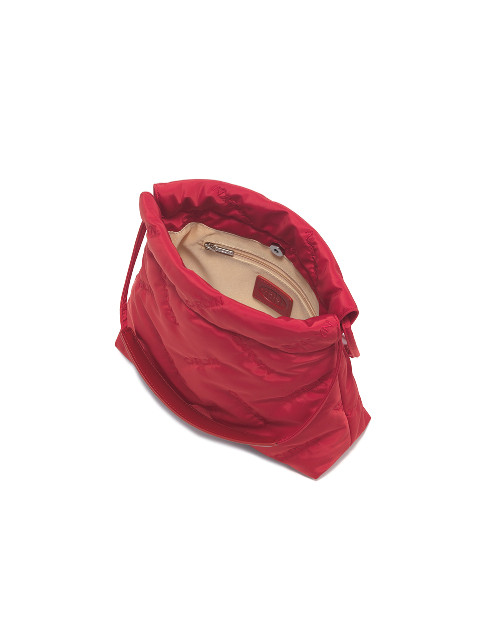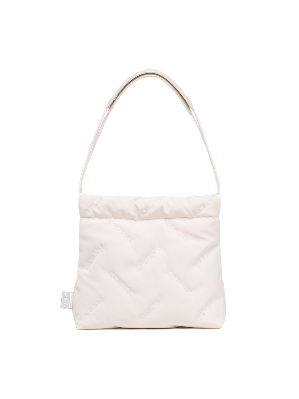 · Mini bag with CARLYN logo quilting · Adjustable drawstring opening · Compact yet spacious design with CARLYN metal label · Interior: 1 open pocket, 1 zip pocket