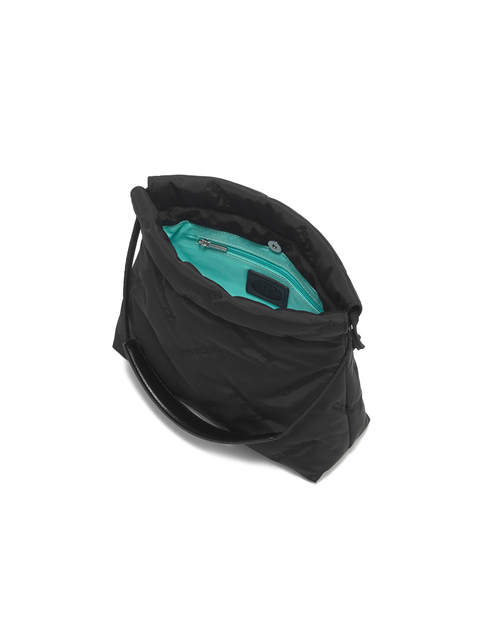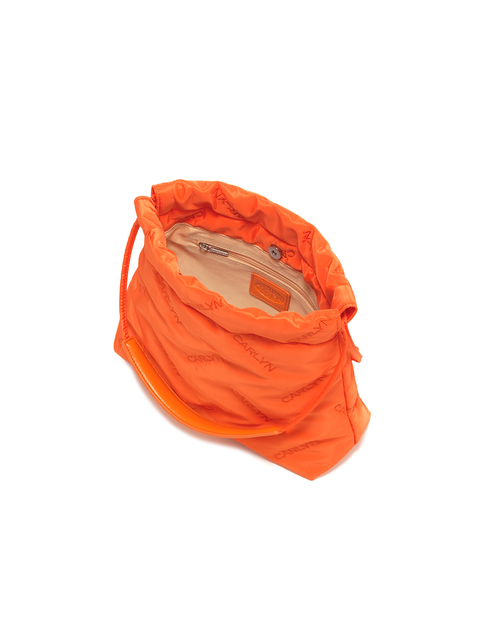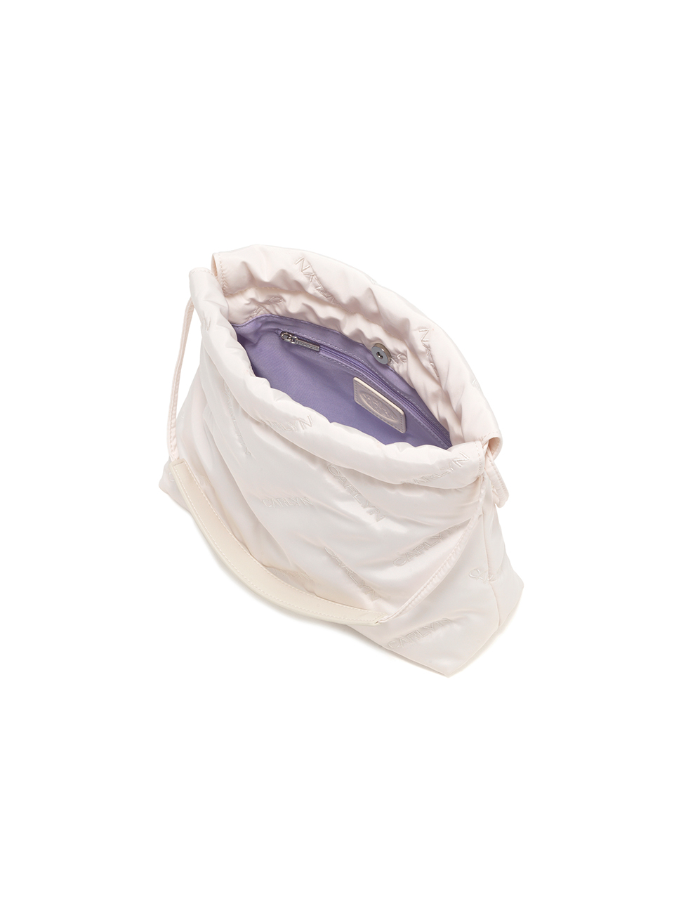 · Mini bag with CARLYN logo quilting · Adjustable drawstring opening · Compact yet spacious design with CARLYN metal label · Interior: 1 open pocket, 1 zip pocket