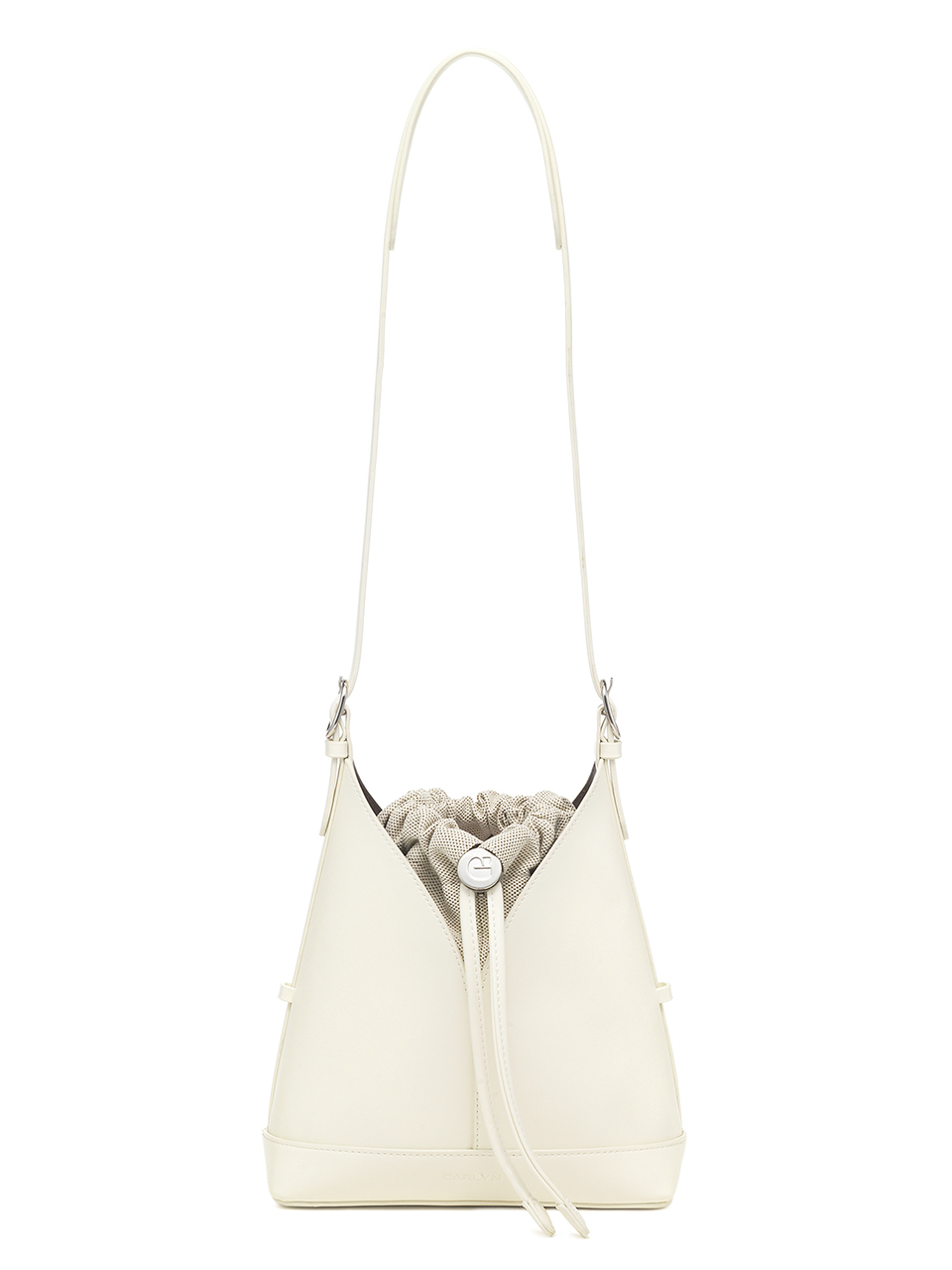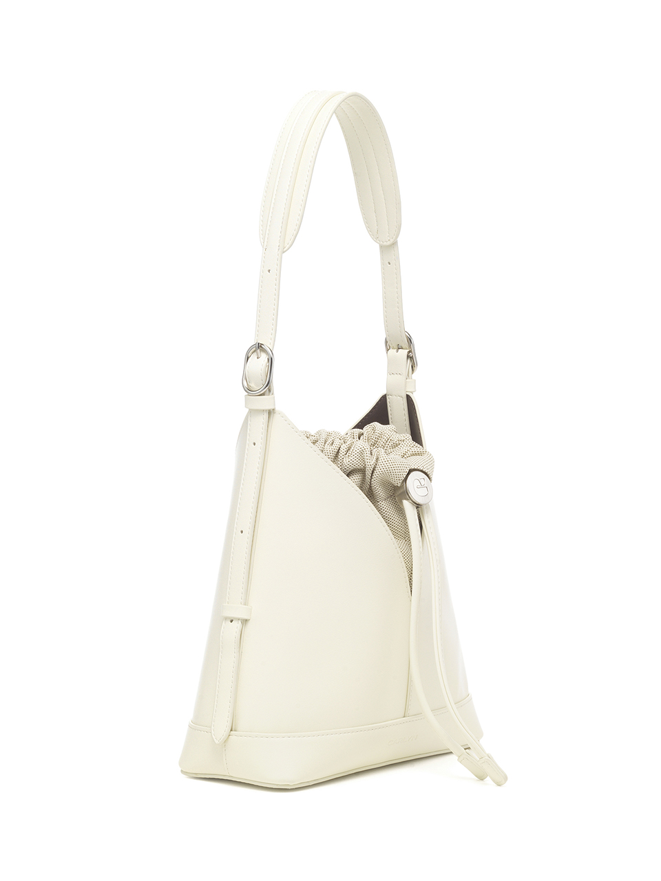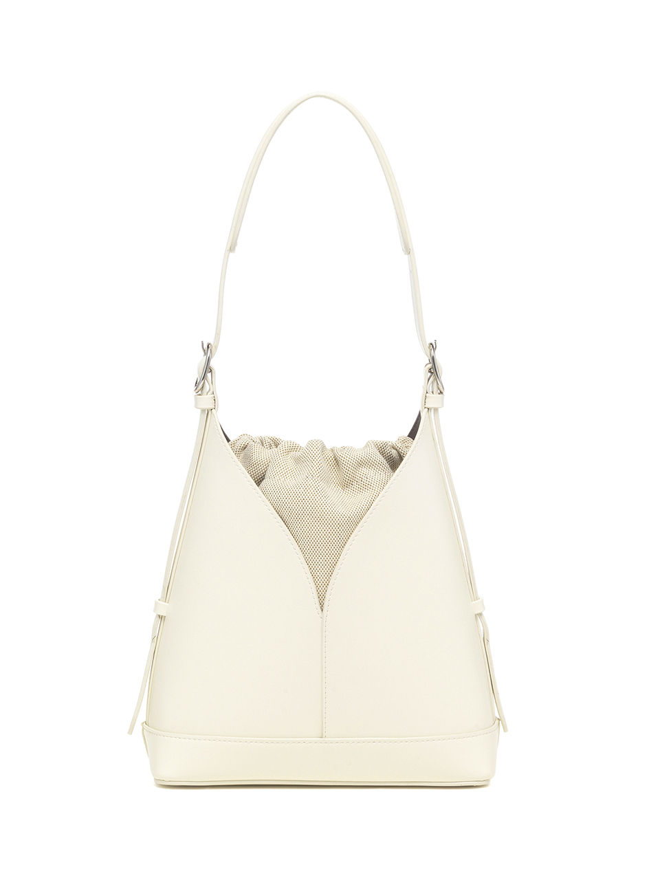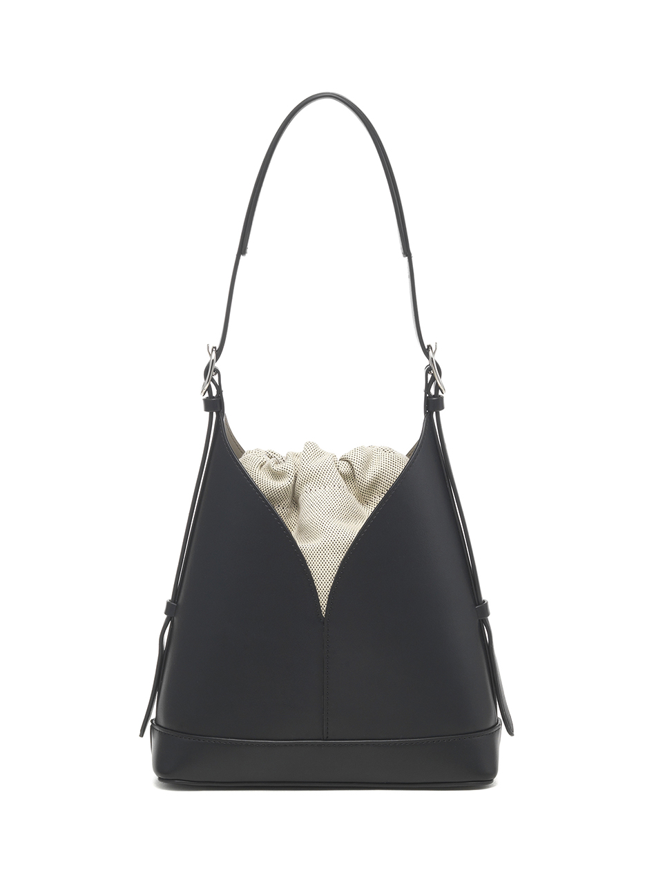 · A V-cut bucket bag that blends minimalist design with everyday functionality