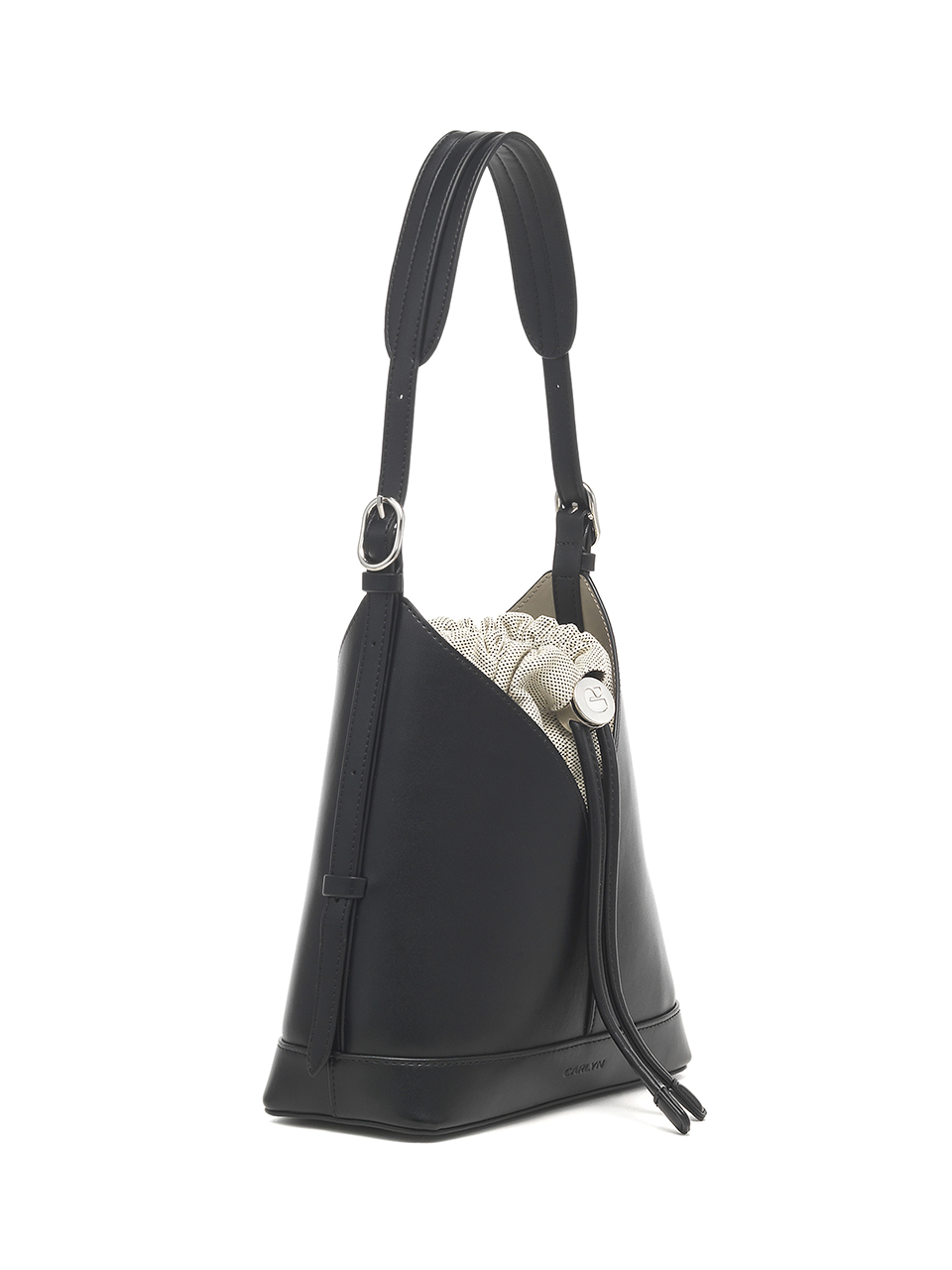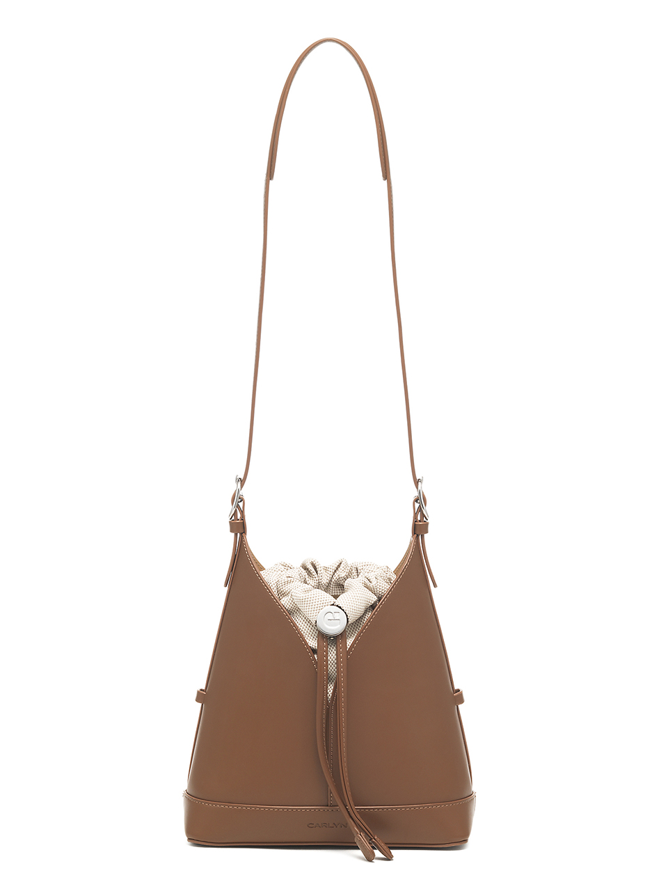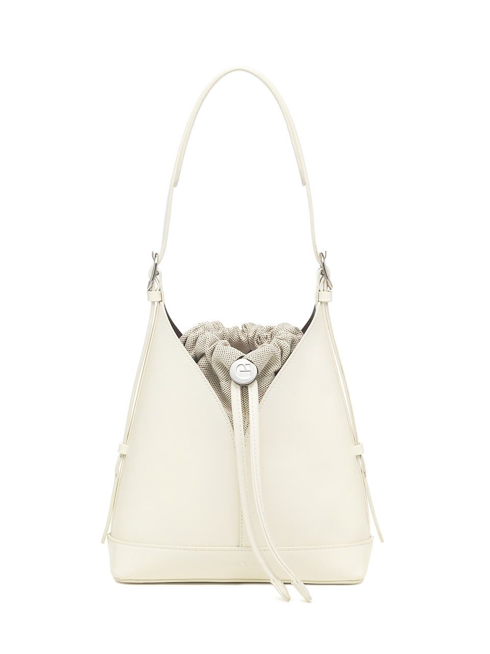 · A V-cut bucket bag that blends minimalist design with everyday functionality