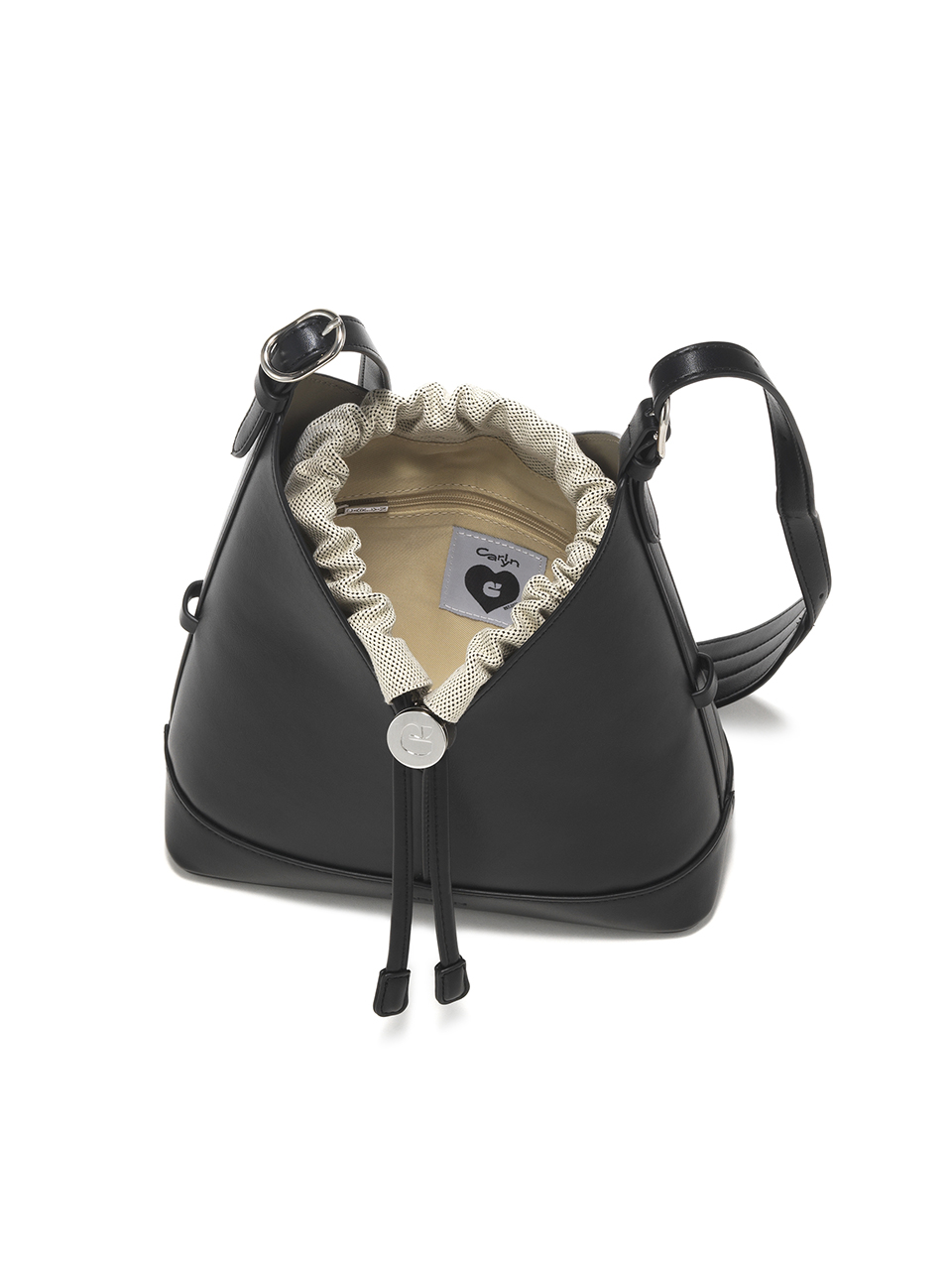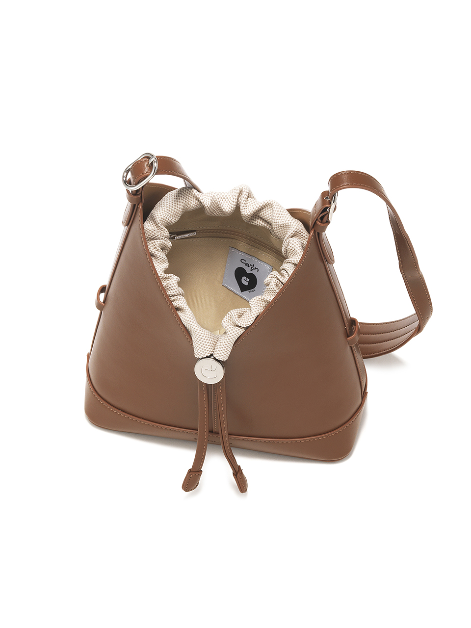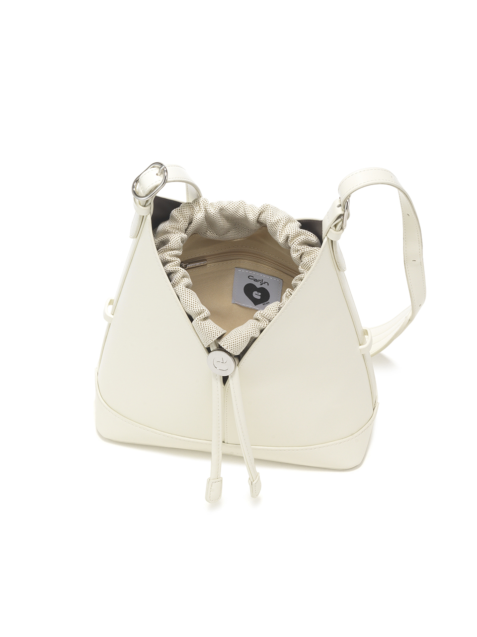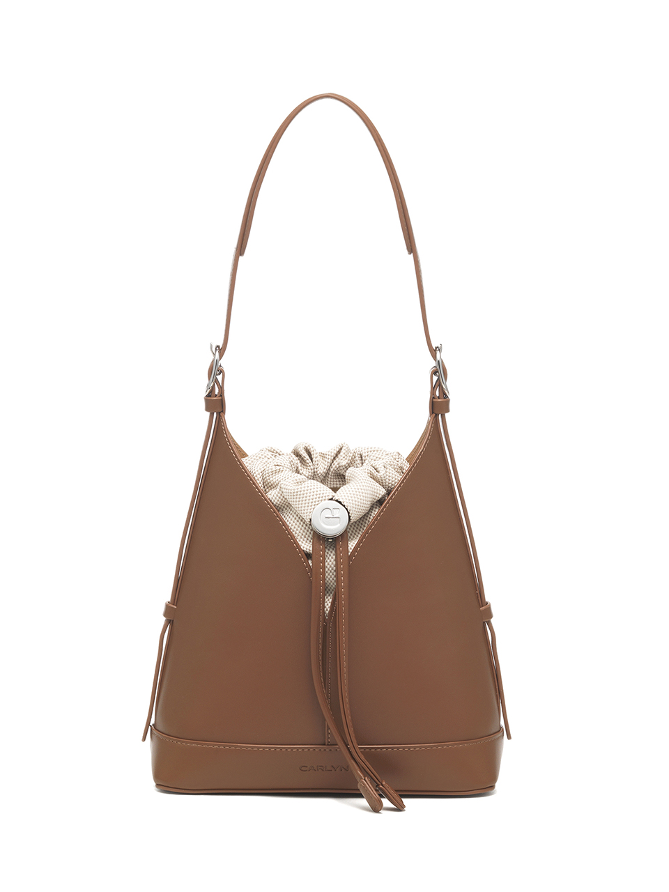 · A V-cut bucket bag that blends minimalist design with everyday functionality