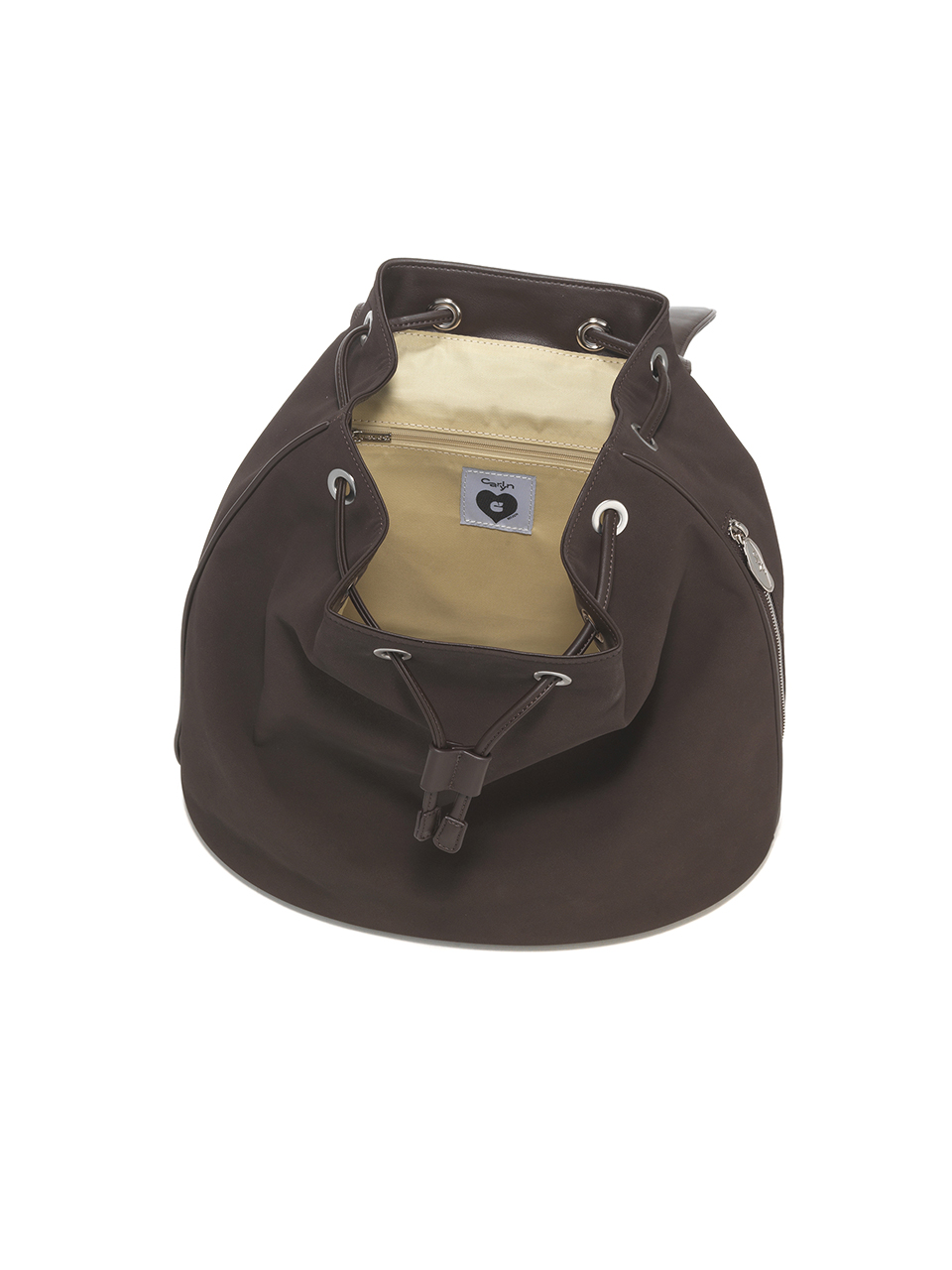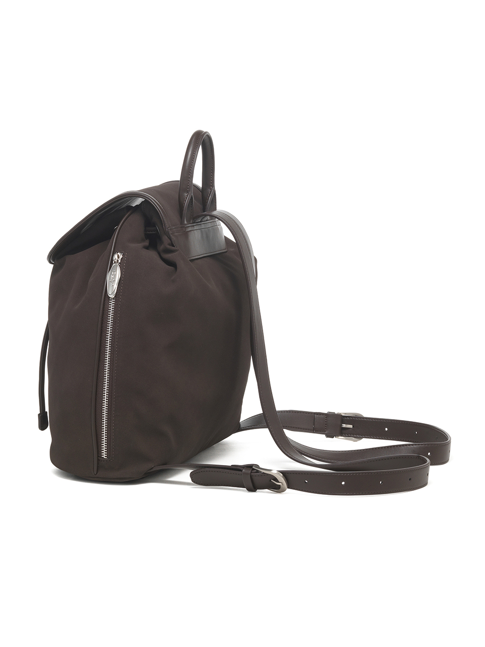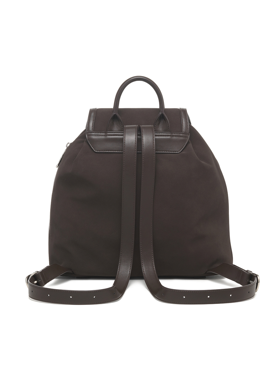 · Soft suede-touch backpack with smooth leather trim, creating a refined silhouette.