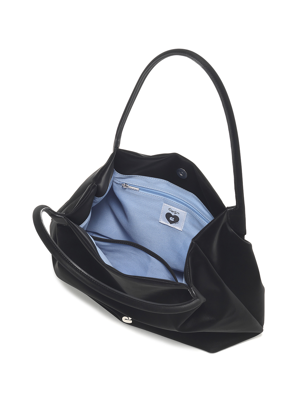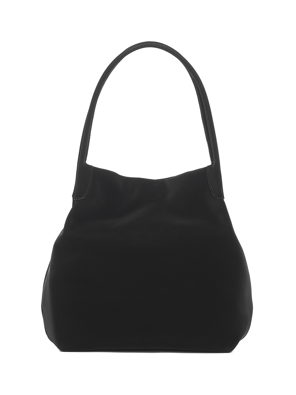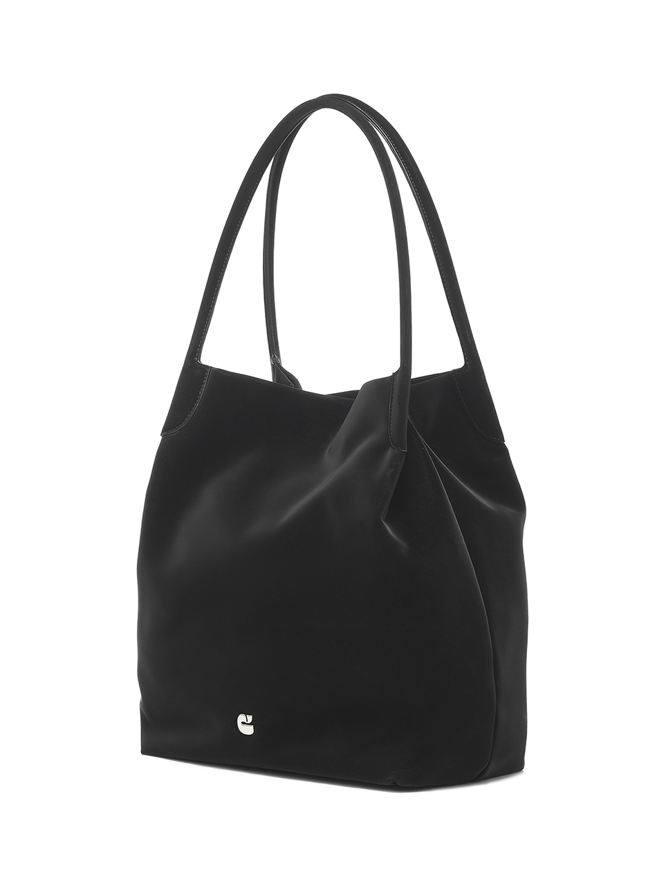 · Crafted from soft-touch material with a subtle sheen, forming a relaxed bucket silhouette.
